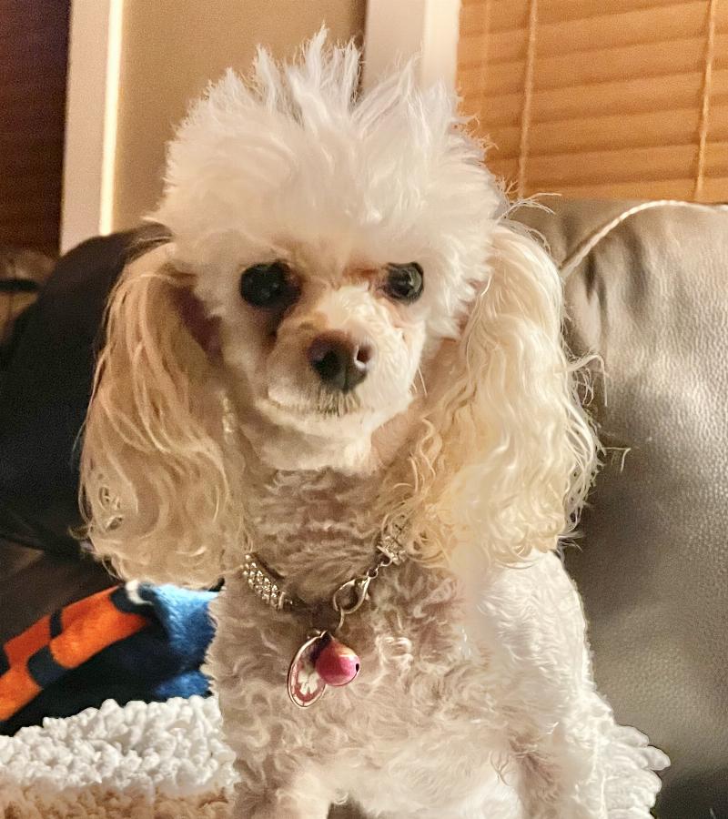 Dani 12.09.21 taken at home, hair cut 2 weeks ago, collar is stretch diamond like jewels. Bell, ADA ID and a capsule which contains her id.