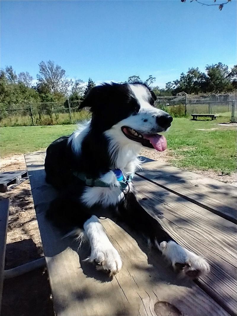 Enjoying a sunny day at the dog park. He’s not quite 2 years old and about 47 lbs. He loves to chase frisbees and run after other dogs chasing balls.