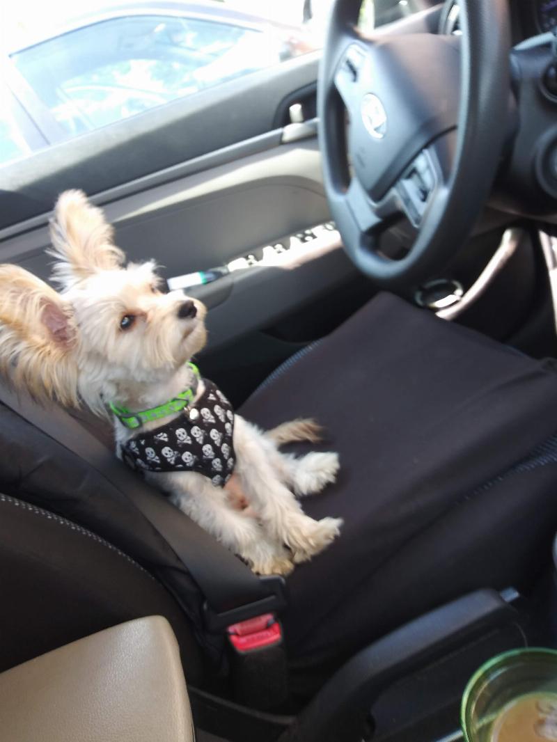 Here is a picture of Dexter saving my seat in the car. He always waits so patently for me and doesn’t make any fuss. As you can tell he always keeps an ear or two up listening for when I’ll be back!