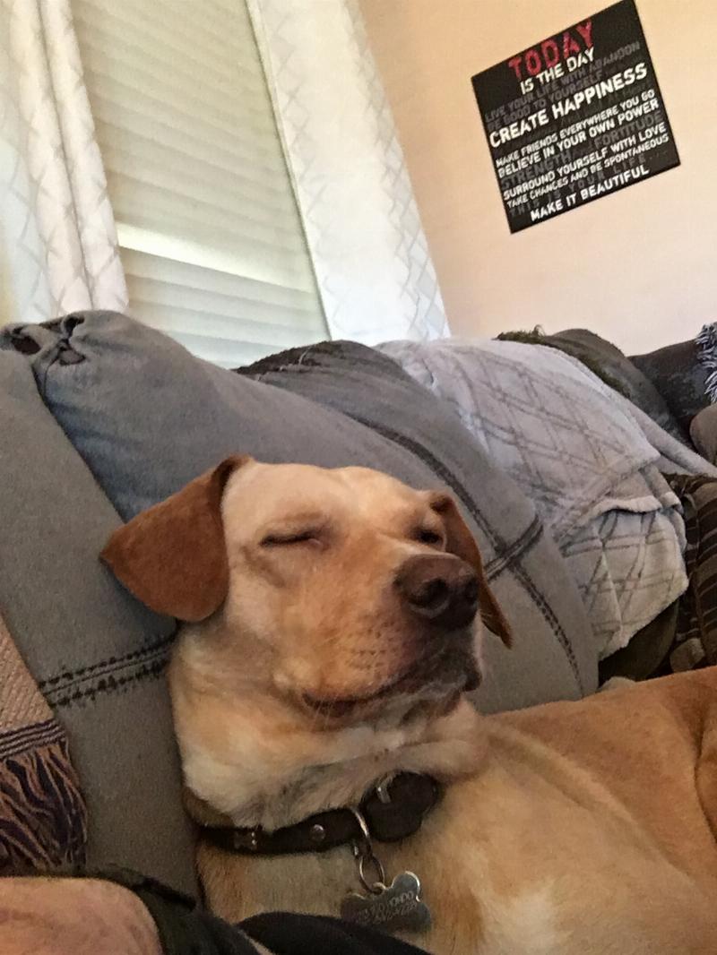 This is Dexter. My service dog. My best friend. He is a yellow Labrador retriever with a wonderful attitude and a great sense of humor. He goes with me everywhere I go.