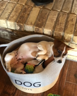 Ditto love sleeping with his toys, or maybe guarding his toys. Not sure which. He always finds the best places to sleep. Ditto love everyone and everything.