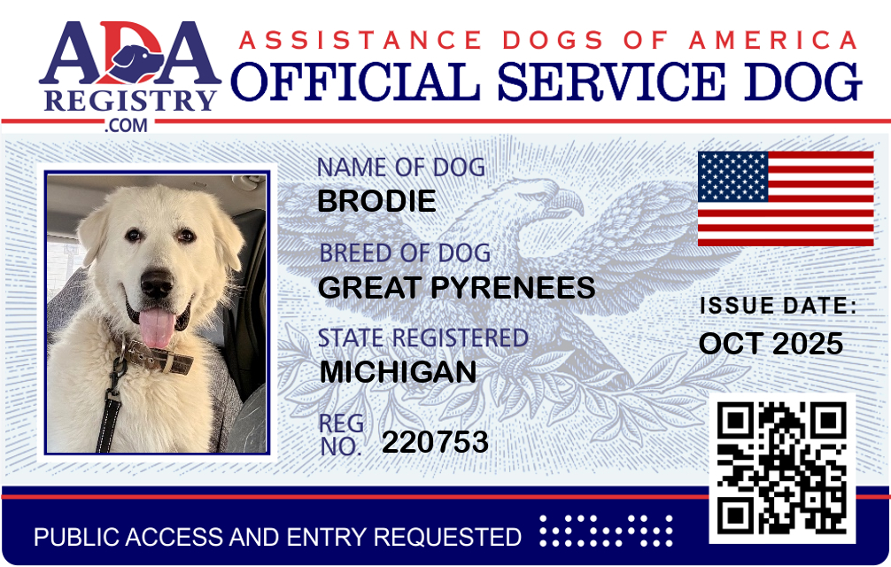 Service Dog Registration for Brodie