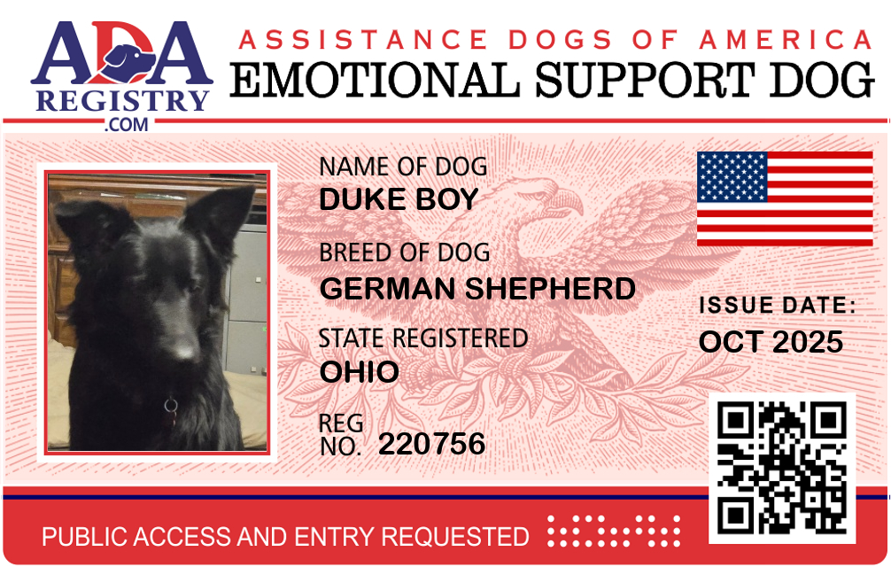 Emotional Support Dog Registration for Duke Boy
