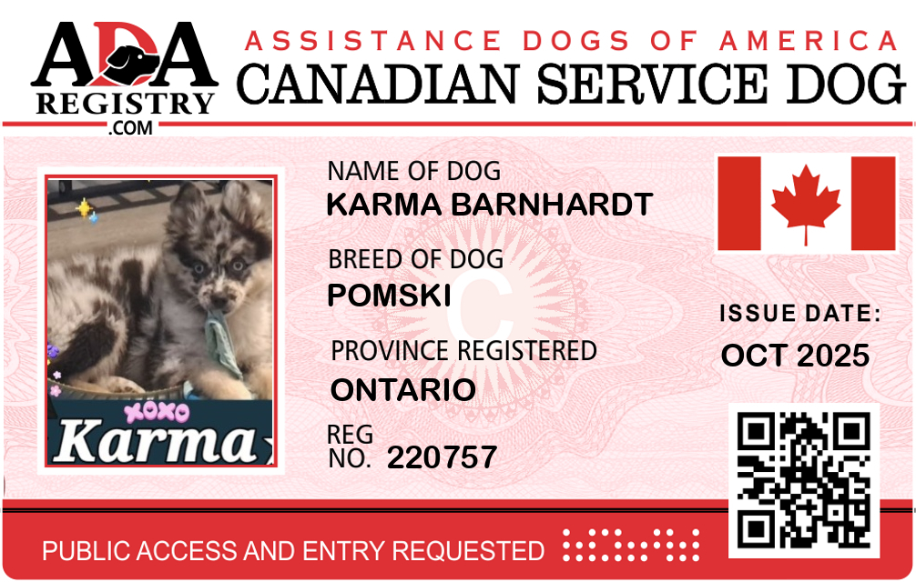 Service Dog Registration for Karma Barnhardt
