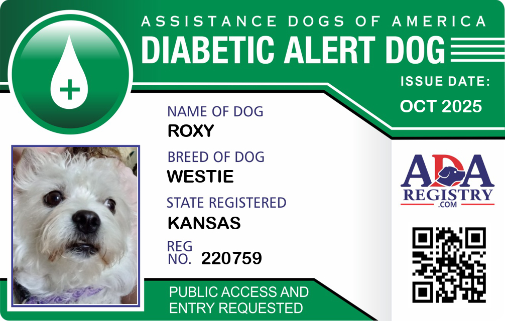 Diabetic Alert Dog Registration for Roxy