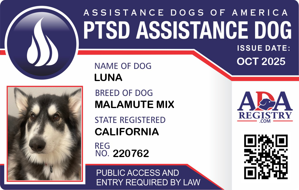 PTSD Assistance Dog Registration for LUNA