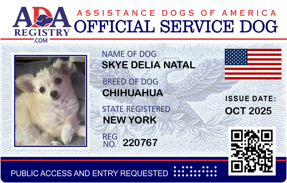 Service Dog Registration for Skye Delia Natal