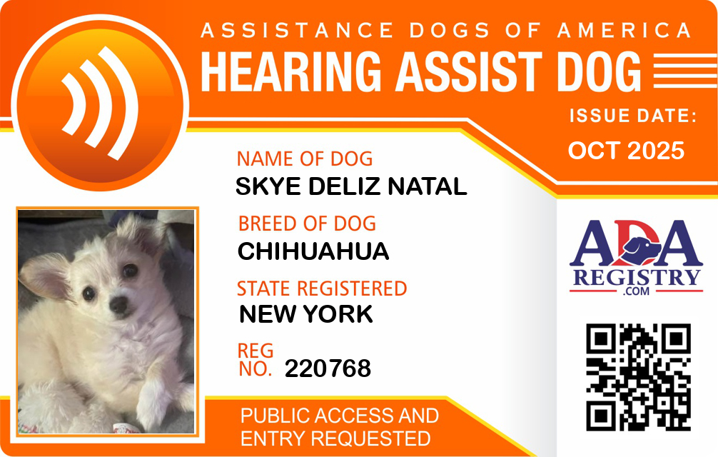 Hearing Assistance Dog Registration for Skye Deliz Natal