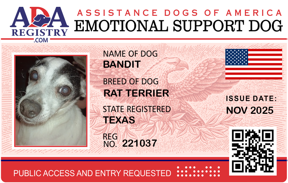 Emotional Support Dog Registration for Bandit