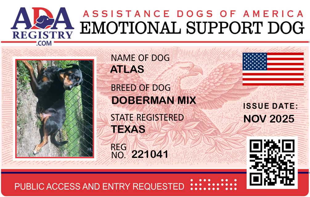 Emotional Support Dog Registration for Atlas