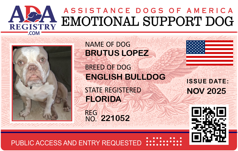Emotional Support Dog Registration for Brutus Lopez