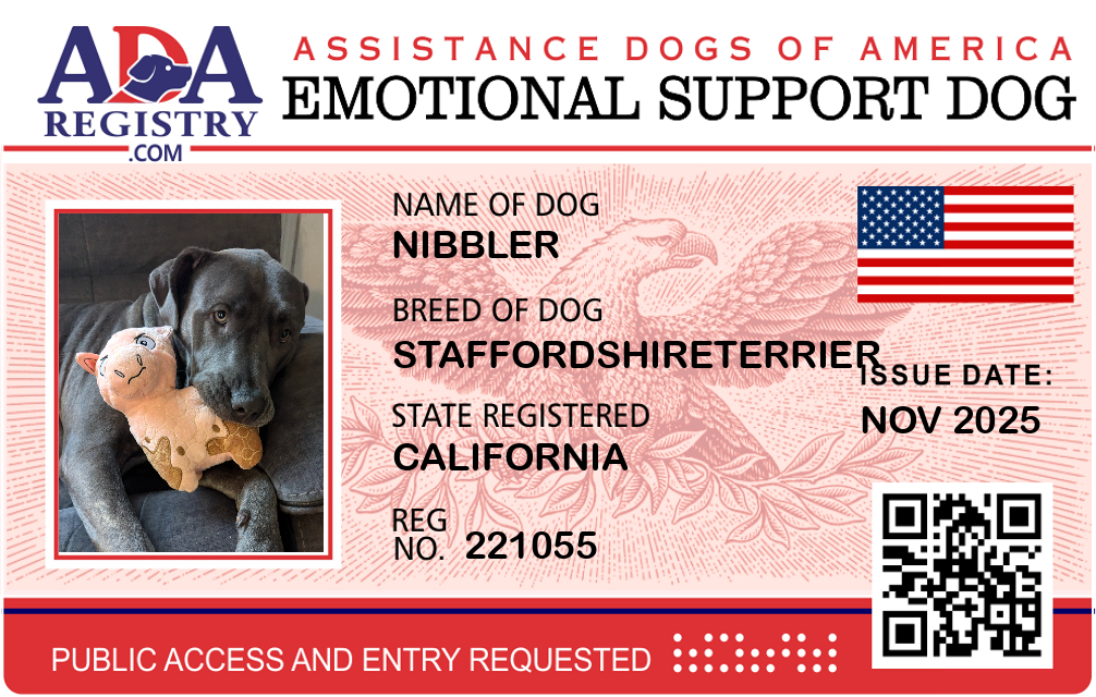 Emotional Support Dog Registration for Nibbler
