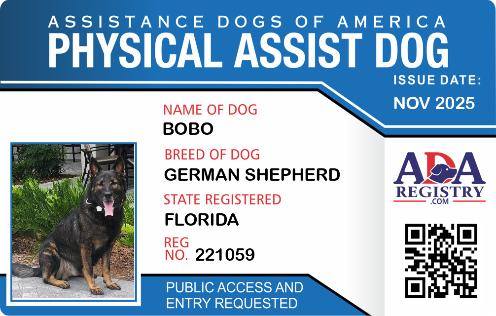Physical Assistance Dog Registration for Bobo