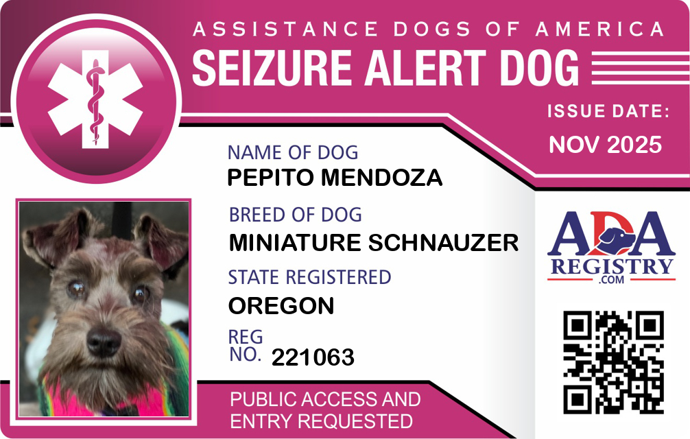 Seizure Assistance Dog Registration for Pepito Mendoza