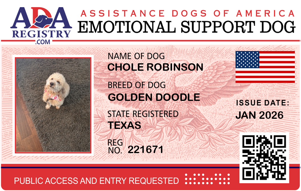 Emotional Support Dog Registration for Chole Robinson