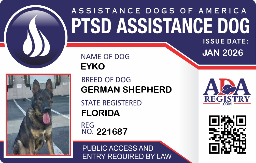 PTSD Assistance Dog Registration for EYKO