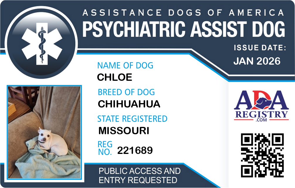 Psychiatric Service Dog Registration for Chloe