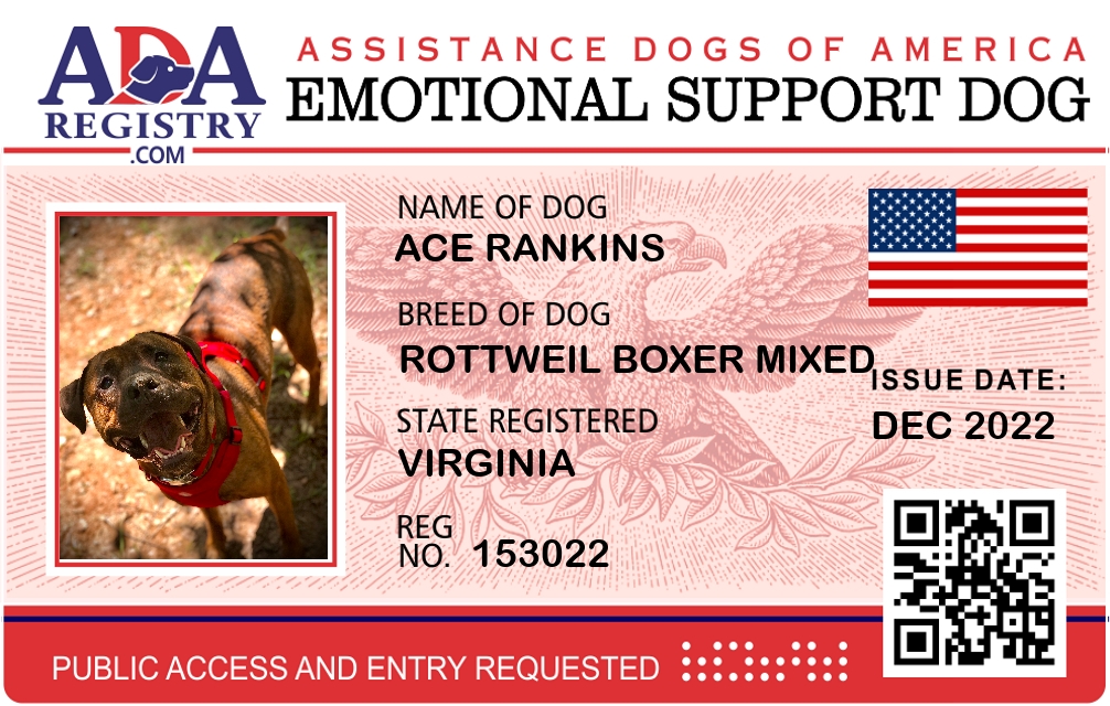 Emotional Support Dog Registration for Ace Rankins