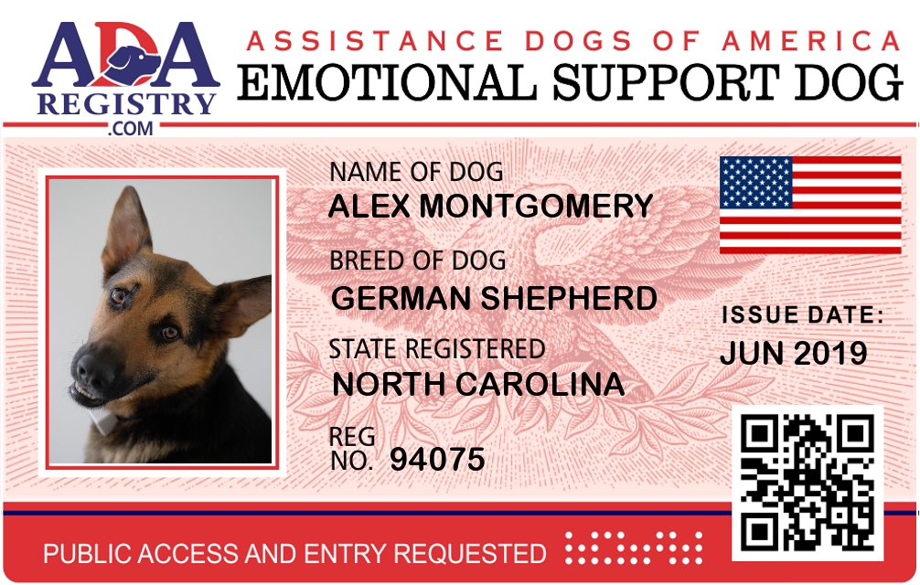 Emotional Support Dog Registration for Alex Montgomery