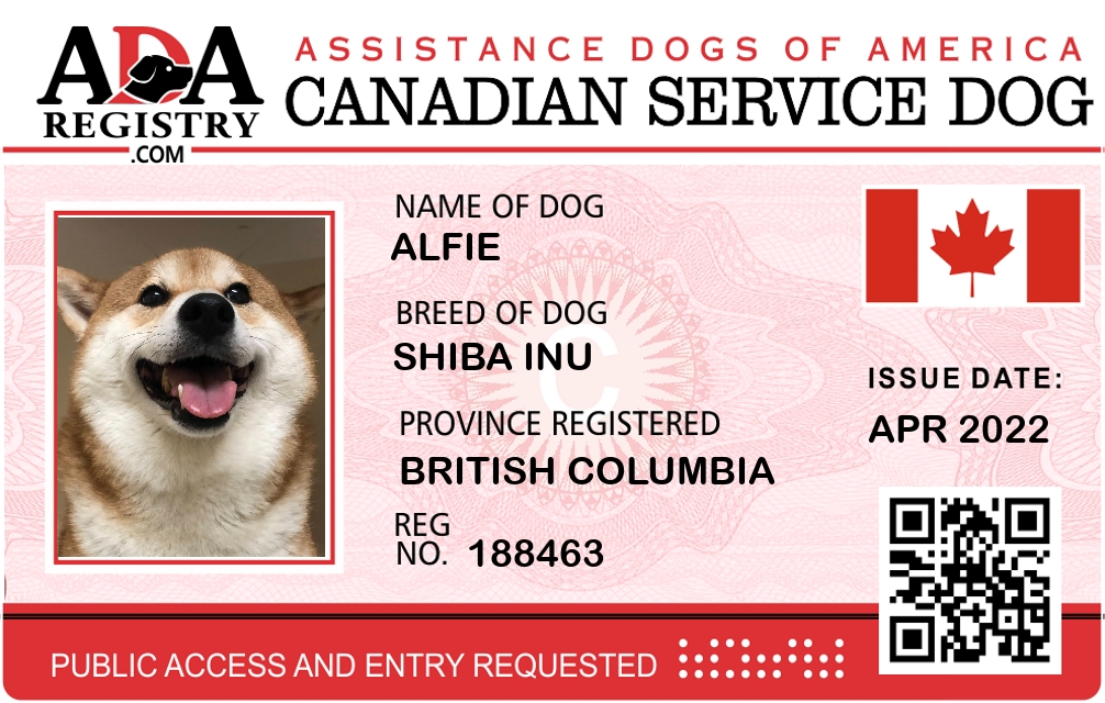 Service Dog Registration for Alfie