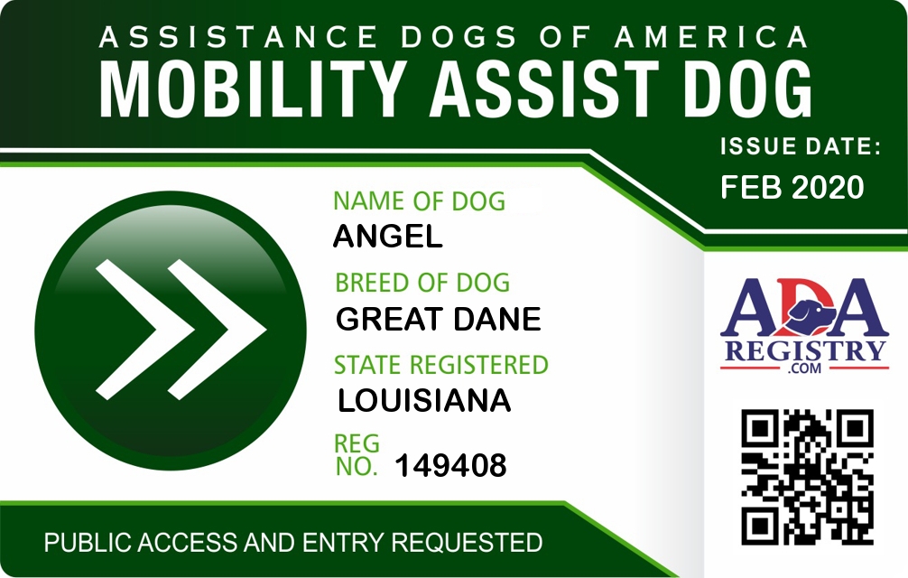 Registration Type: Brace / Mobility Assistance Dog Registration
