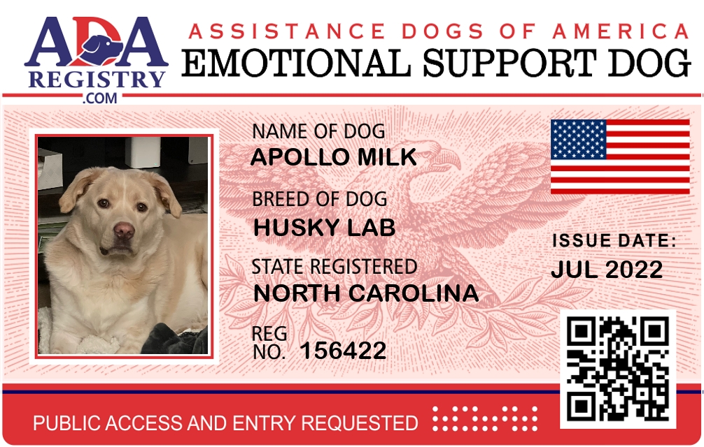 Emotional Support Dog Registration for Apollo Milk