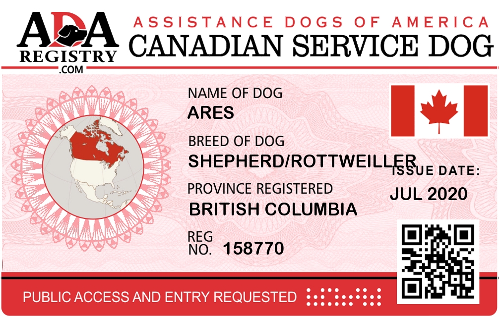 Service Dog Registration for Ares