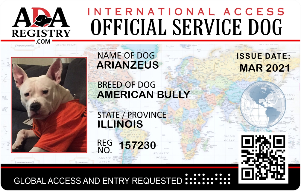 International Service Dog Registration for ArianZeus