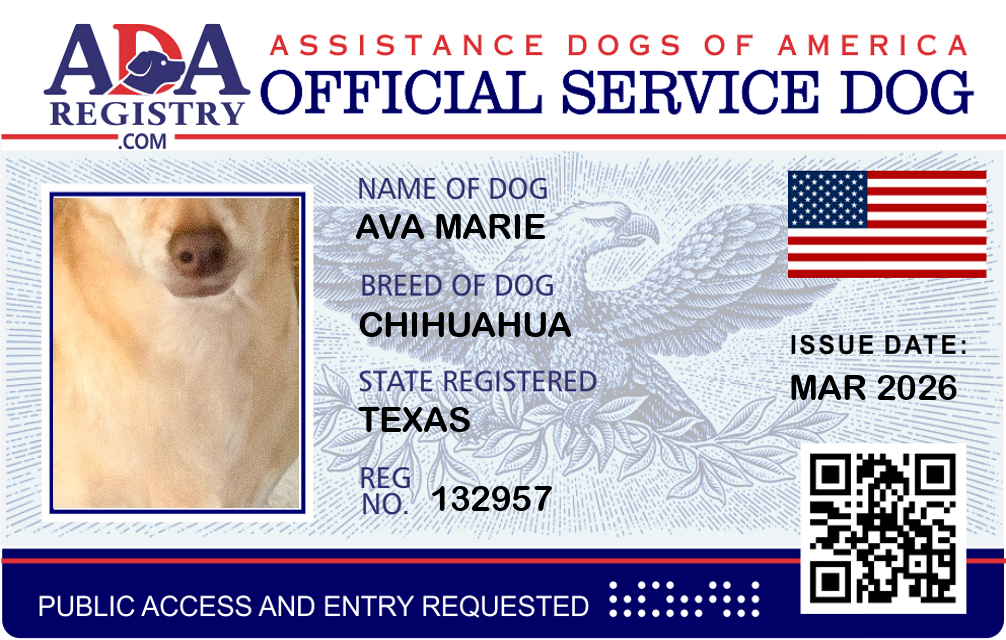 Service Dog Registration for Ava Marie