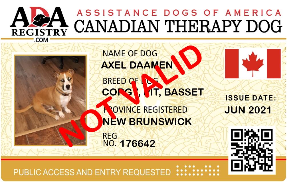 Therapy Dog Registration for Axel Daamen