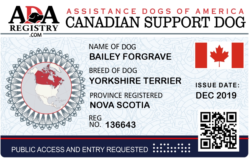 Emotional Support Dog Registration for Bailey Forgrave