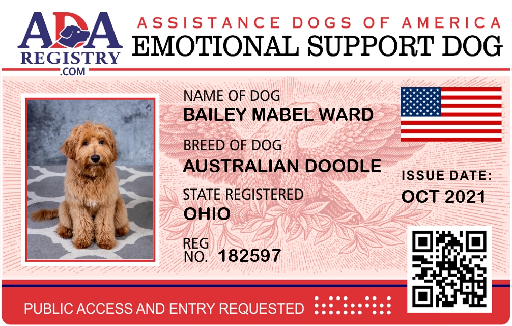 Emotional Support Dog Registration for Bailey Mabel Ward