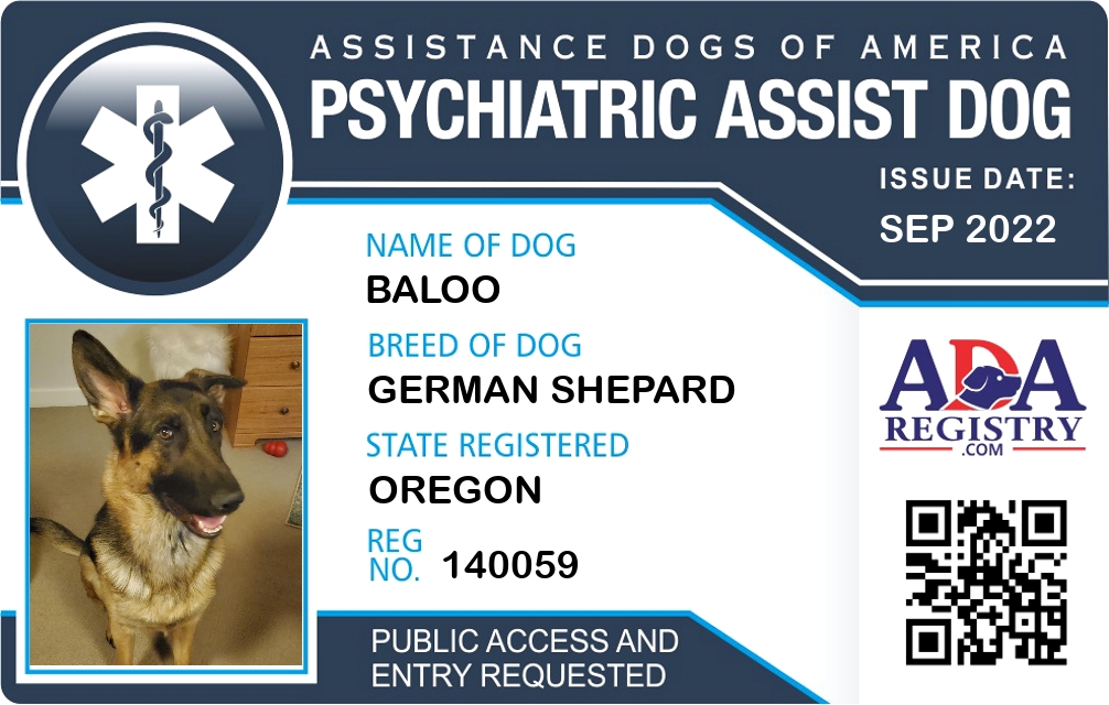 Psychiatric Service Dog Registration for Baloo
