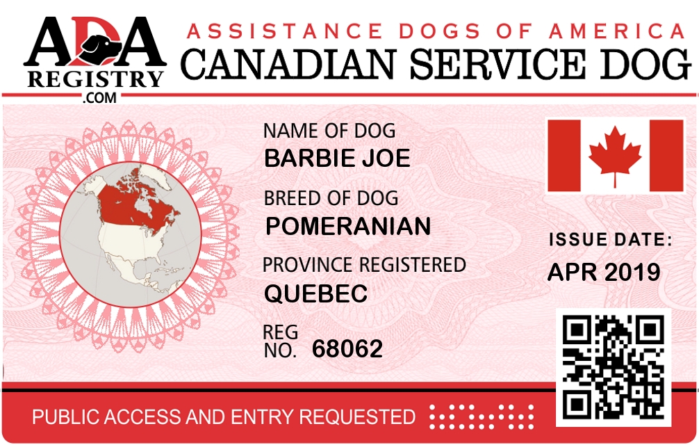 Service Dog Registration for Barbie Joe