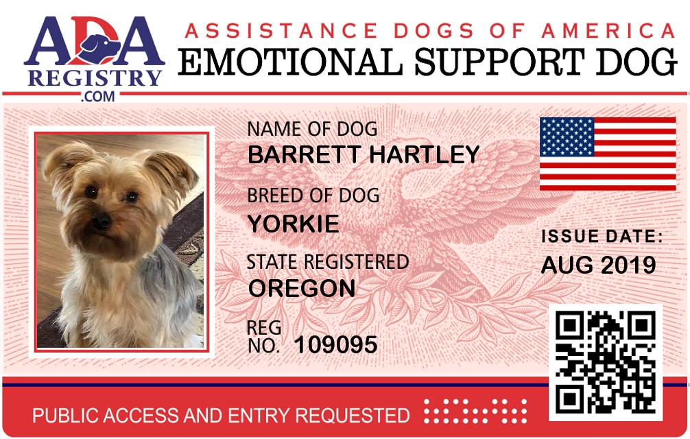 Emotional Support Dog Registration for Barrett Hartley