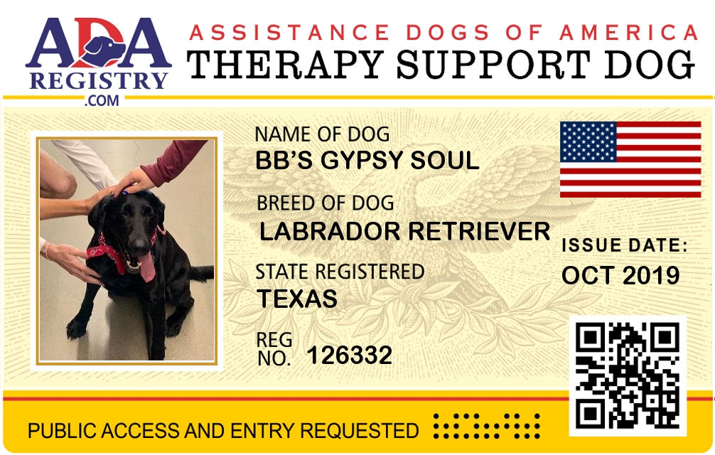 Therapy Dog Registration for BB’s Gypsy Soul