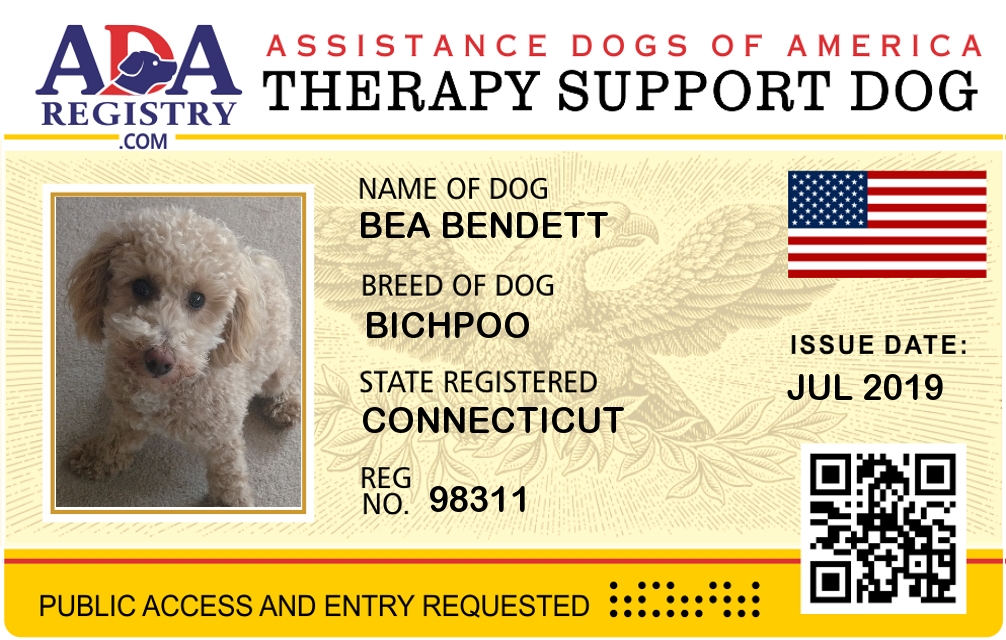 Therapy Dog Registration for Bea Bendett