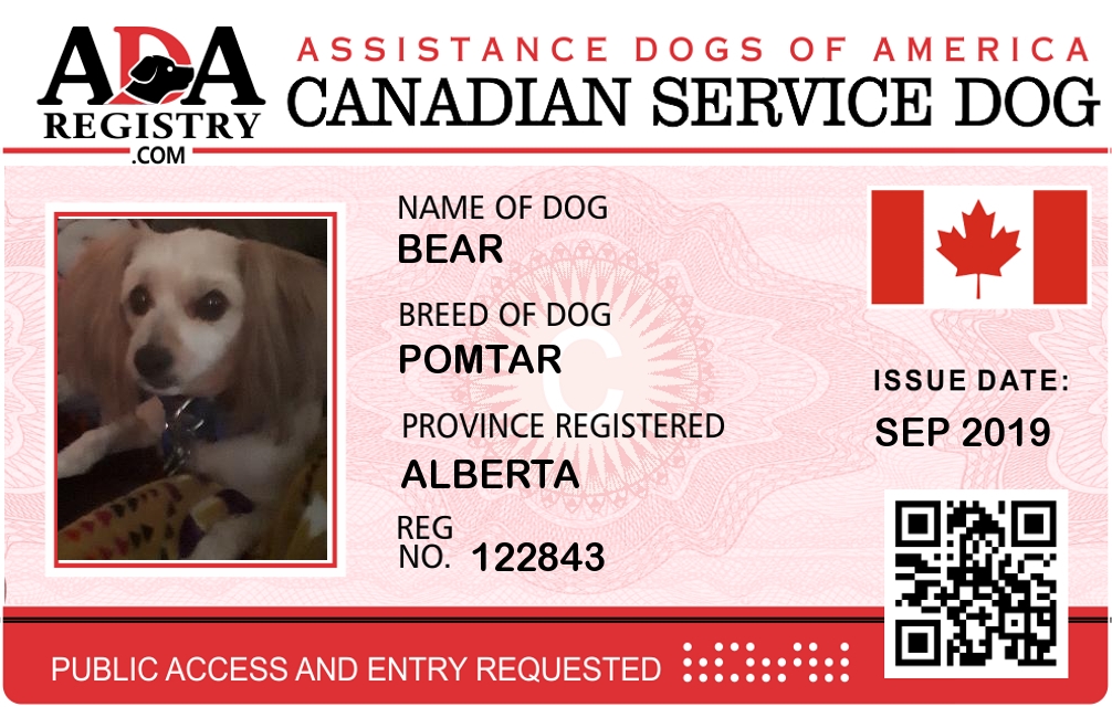 Service Dog Registration for Bear