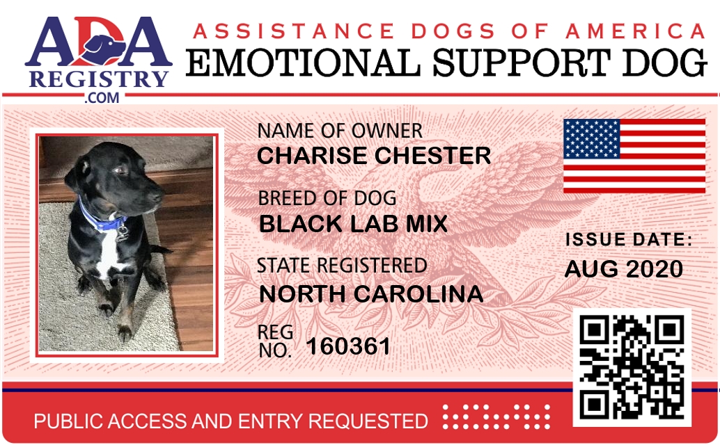 Emotional Support Dog Registration for Bear Chester