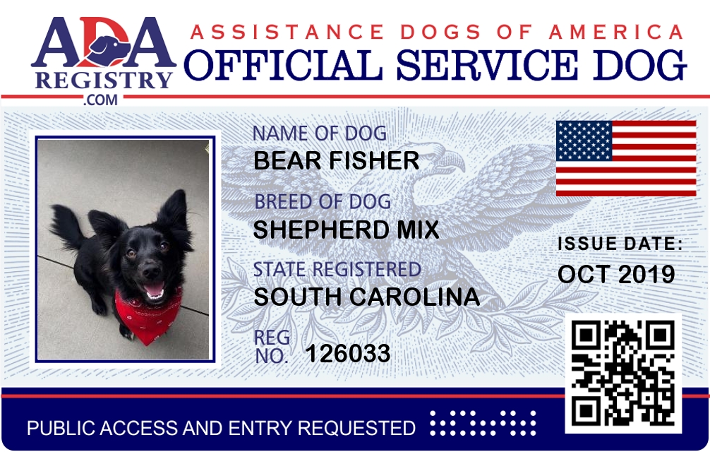 Service Dog Registration for Bear Fisher