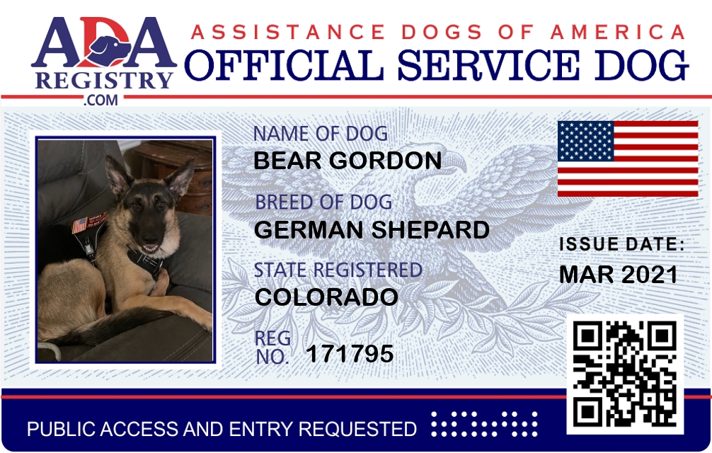 Service Dog Registration for Bear Gordon
