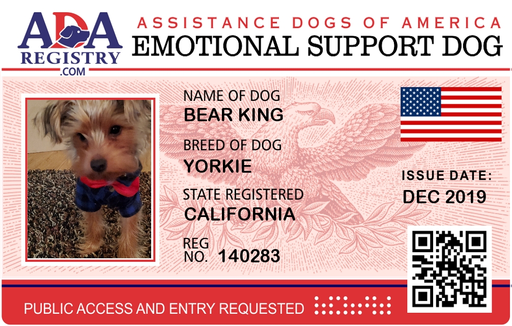 Emotional Support Dog Registration for Bear King