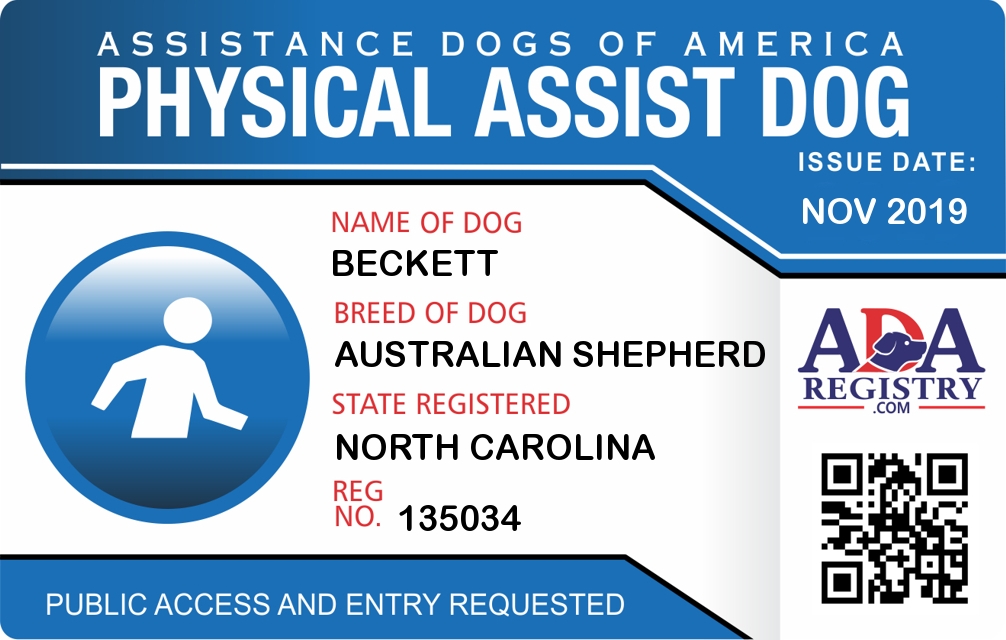 Physical Assistance Dog Registration for Beckett