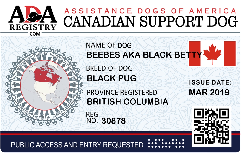 Emotional Support Dog Registration for Beebes aka Black Betty