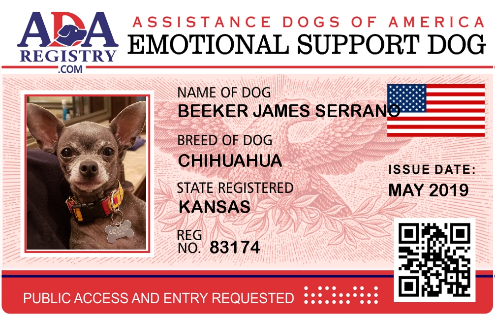 Therapy Dog Registration for Beeker James Serrano