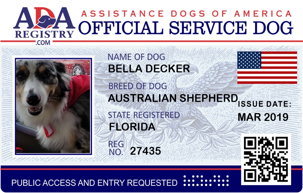 PTSD Assistance Dog Registration for Bella Decker