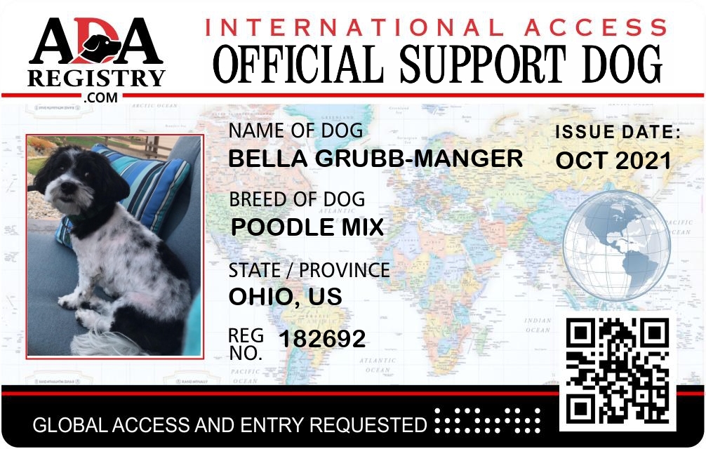 Emotional Support Dog Registration for Bella Grubb-Manger