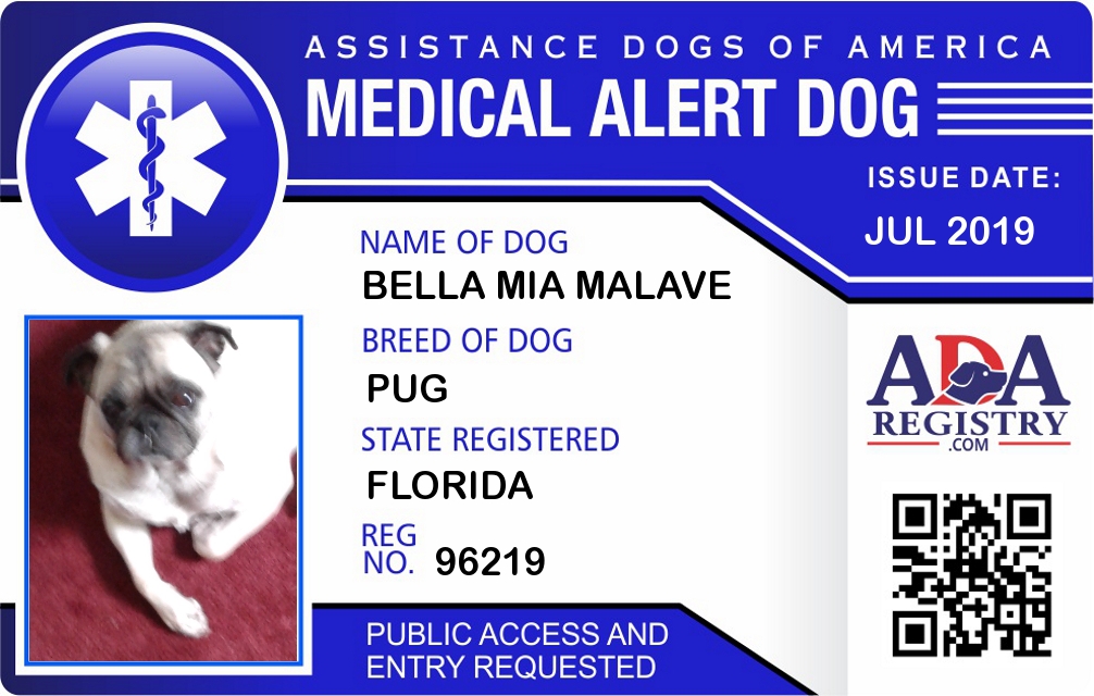 Medical Alert Dog Registration for Bella Mia Malave