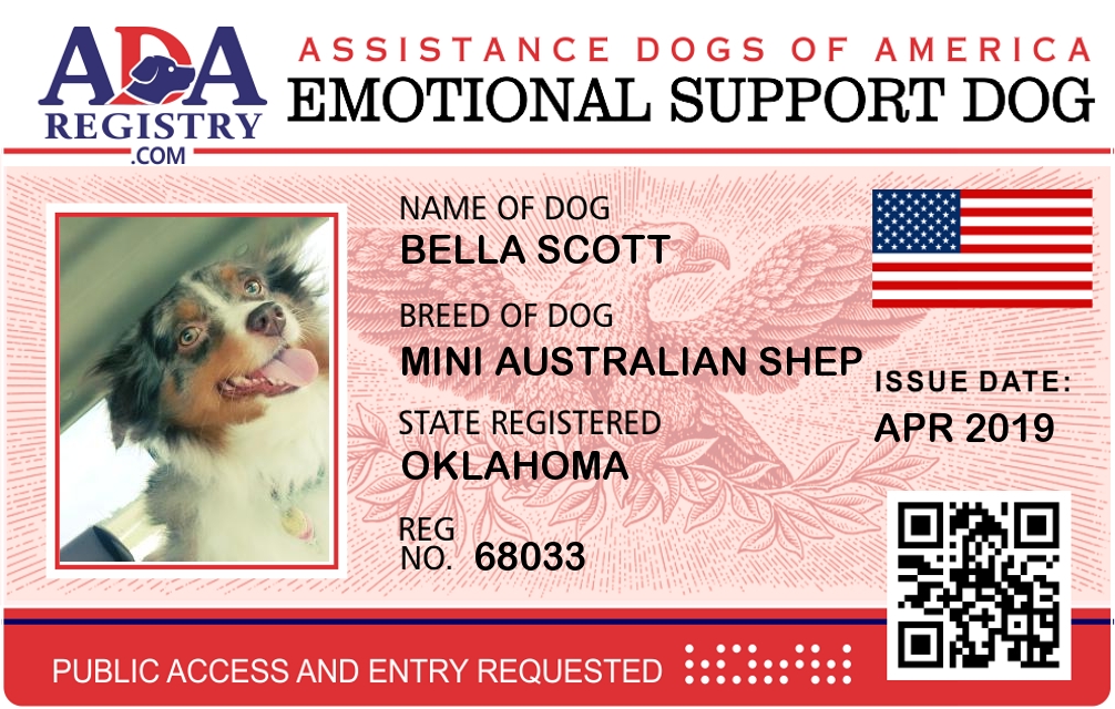 Emotional Support Dog Registration for Bella Scott