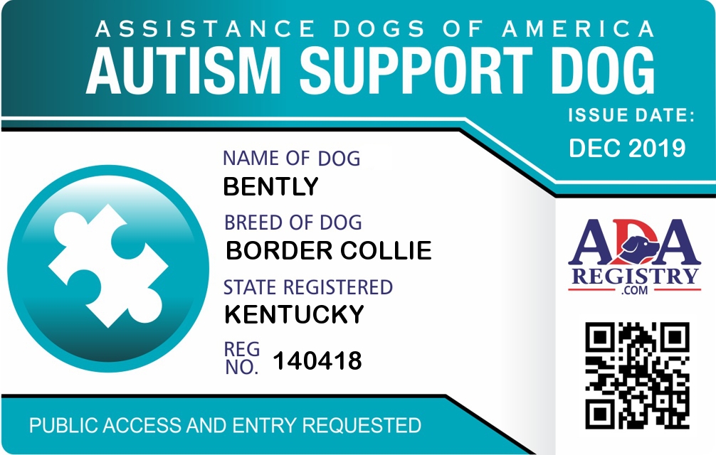 Autism Assistance Dog Registration for Bently